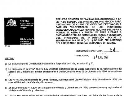Resolución Nómina de Asignación de Cupos a Familias Seleccionadas por el D.S.19